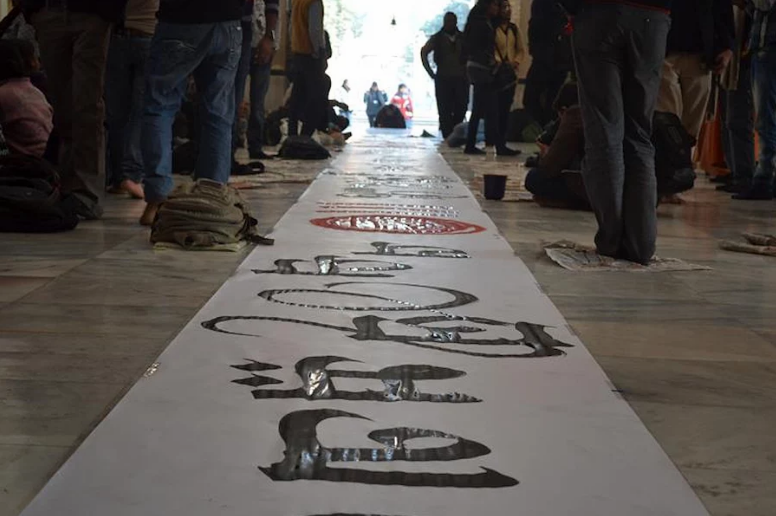 Amongst these young enthusiasts was a self taught calligrapher who spoke with chacha for long. He mentioned a group he was a part of with the sole mission of reviving calligraphy of Indian scripts. With infectious enthusiasm he showed me his work and admitted to me that he was not going to recommend our event to his group till he had seen it himself. He was inspired by our use of digital art and wanted to explore it further himself within the context of calligraphy. I remembered the girl from earlier in the day. In the same day I had heard of the death and resurrection of the art form. I look forward to being witness, spend the rest of these three weeks learning more about the observers who come into the dark room where they can rely on no explanation only on their own willingness to immerse.