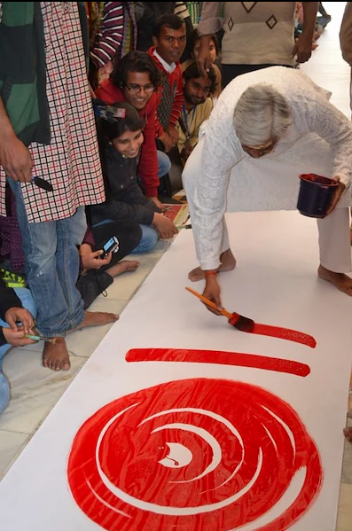 Day one also showed how an opinion expressed at the start of the day which may seal a thought can be totally debunked by the end of the very same day. While my uncle (chacha) Rajeev Prakash Khare, the main artist of this exhibition provided calligraphy of names of guests in person who were attending, one such guest pointed out while making an instagram story of the calligraphy happening in front of her. “It’s a dying art really, calligraphy.” He being so engrossed in the movement of the letterform, simply nodded and replied with a yes yes, if anyone would have asked him if it would be ok to drive a truck over the building at a moment like this, he would have simply nodded and replied with a yes yes. I watched and took this in, calligraphy is a dying art. Towards the end of the day we were visited by alumni of chacha’s alma mater BHU, students who had taken his workshop years ago. They remembered his elaborate visual poetry of calligraphy in the hall where he went wild with paint on paper. They remembered it to be different from anything they had seen happen with the letterforms.